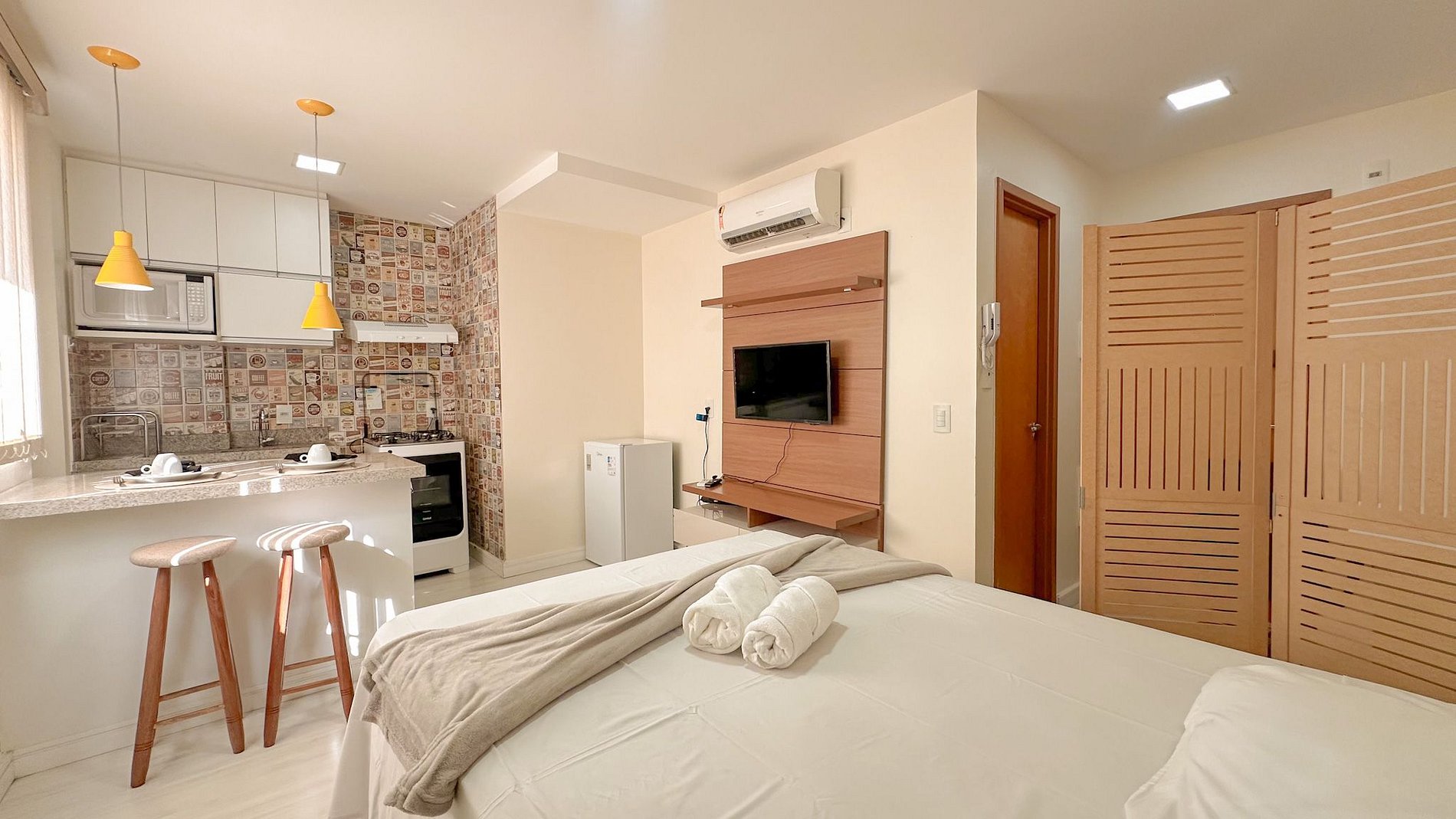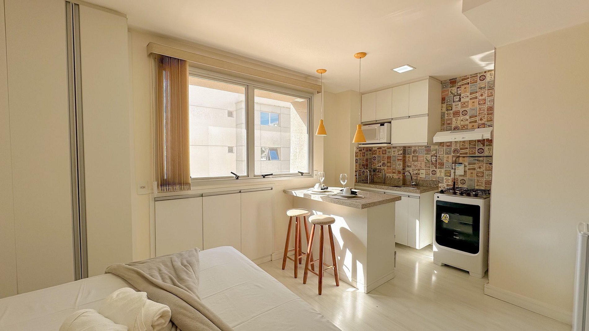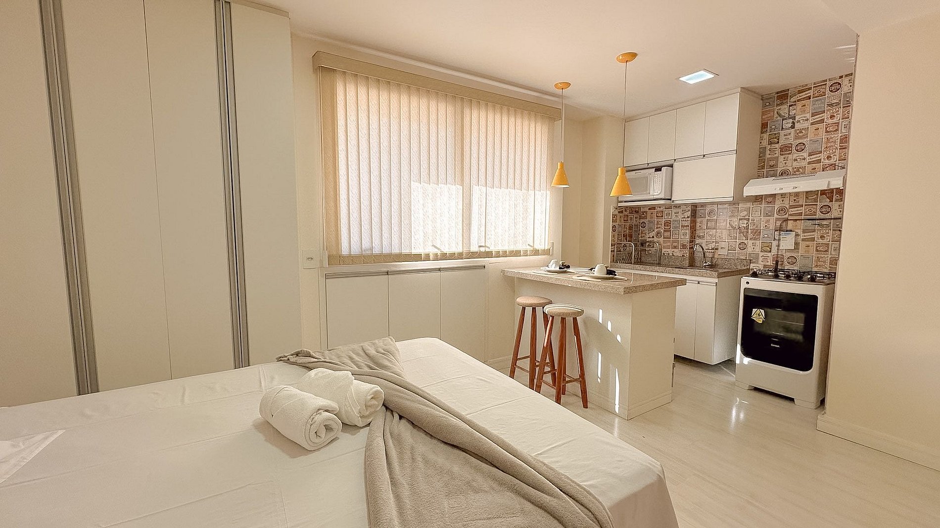 Este apartamento no Liberty oferece o equilíbrio ideal entre modernidade e conforto. A suíte conta com cama aconchegante, enxoval de alta qualidade e um ambiente cuidadosamente decorado para garantir bem-estar. A cozinha é equipada, proporcionando praticidade para preparar suas refeições.