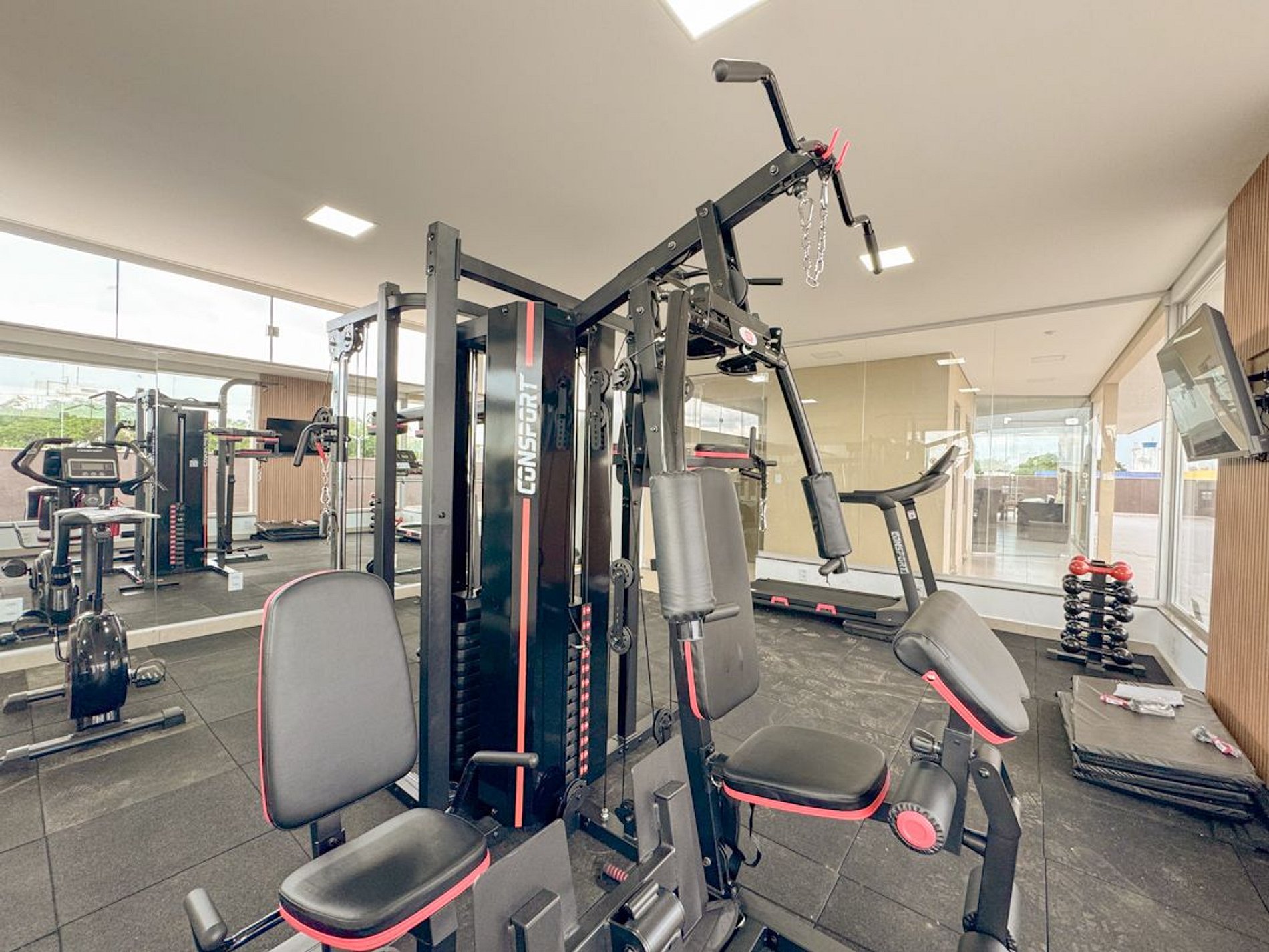 O hóspede pode acessar a academia do prédio, a saúna..